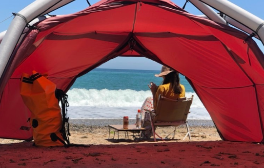 아래는 텐트를 쉘터처럼 사용한 예이다. 더운여름에 원터치 텐트가 좋지만 해변에서 에어켄트를 설치한다면 편하기도 하고 넓은 그늘을 만들 수 있다. 색상도 눈에 띄기 때문에 여름 휴가철에 사용하기 좋을것 같다. 모래사장에서 텐트를 친다는 것은 여간 힘든일이 아니다. 그럴때 하임플래닛의 백도어를 펼치고 펌프질 몇번에 멋있는 쉘터를 만들어내는 내모습이 보고싶다.