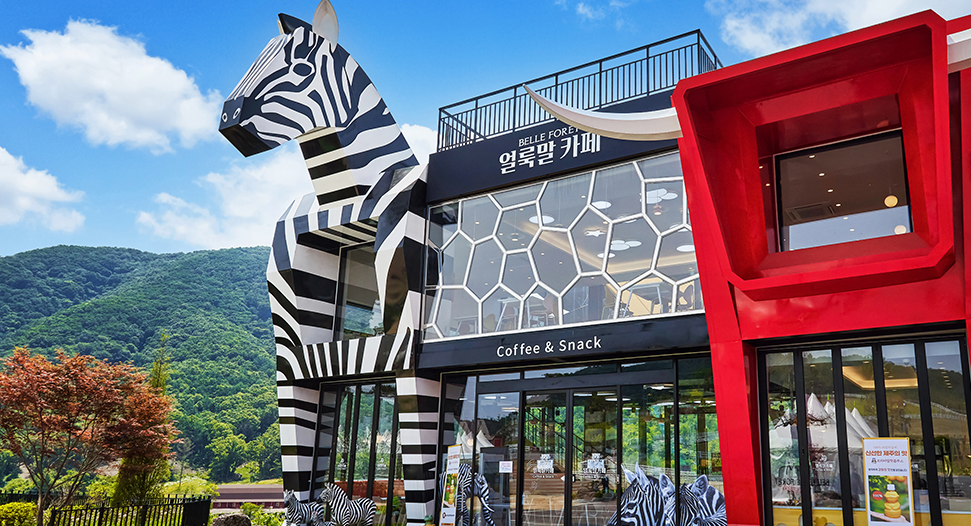 그밖에 산책중에 이용할 수 있는 얼룩말카페도 있다. 아이들이 좋아할만한 외관이다.