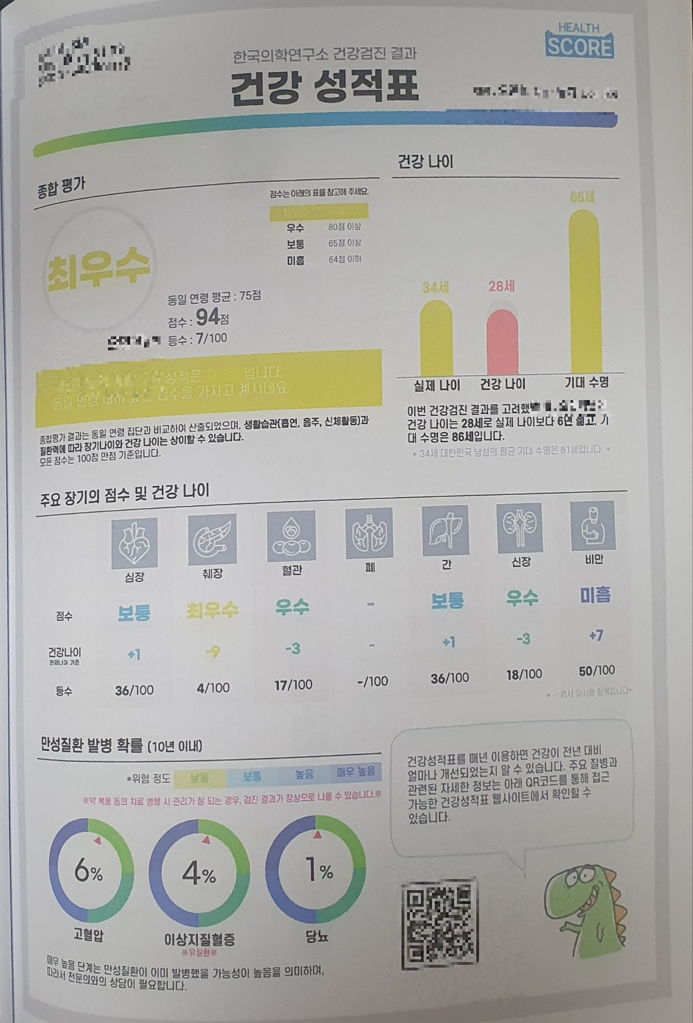 - 건강 검사결과 '최우수', 실제 나이대비 건강나이 -6세