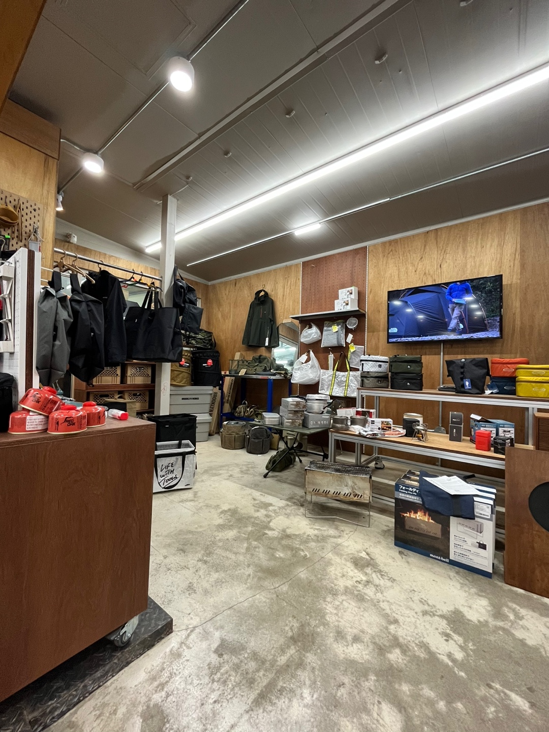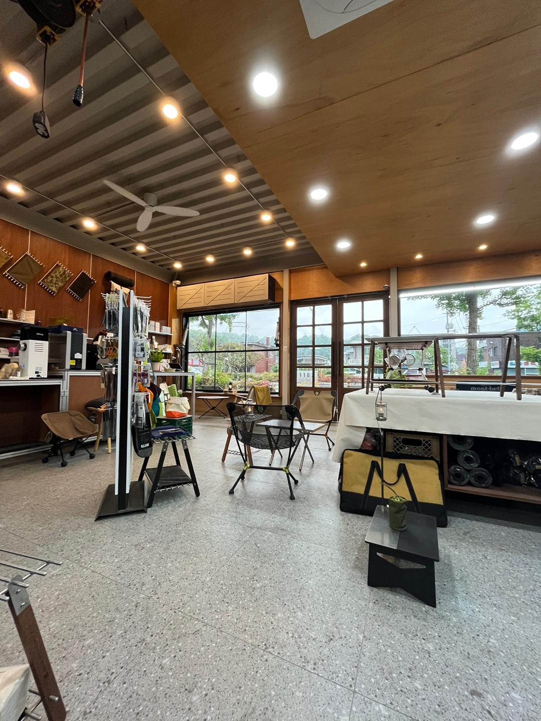 편집샵 안에는 다양한 브랜드들의 제품들이 전시되어있었다. 캠퍼들의 방앗간이라고 불리는 '홀라인'에서 보던 제품들도 있었다. 홀라인은 대청호나 제주, 홍대까지 찾아가야 하지만, 가까운곳에서 다양한 제품들을 볼수 있어서 좋았다.