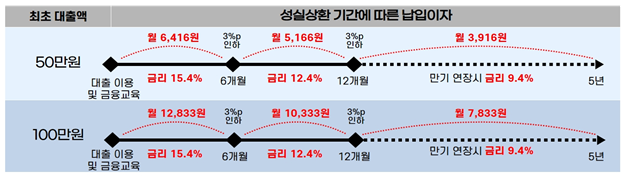 19세 이상 성인을 대상으로 신용평점 하위 20%이하 연소득 35백만원 이하인 경우 대출이 가능하다. 생계를 위한 대출이기 때문에 대면상담 후 대출이 진행되며, 최초 50만원 대출 후 6개월이상 이자를 성실히 납부할 경우 추가 대출도 가능하다. 자세한 정보는 금융감동위원회 홈페이지에 서 확인할 수 있다. 정보바로가기