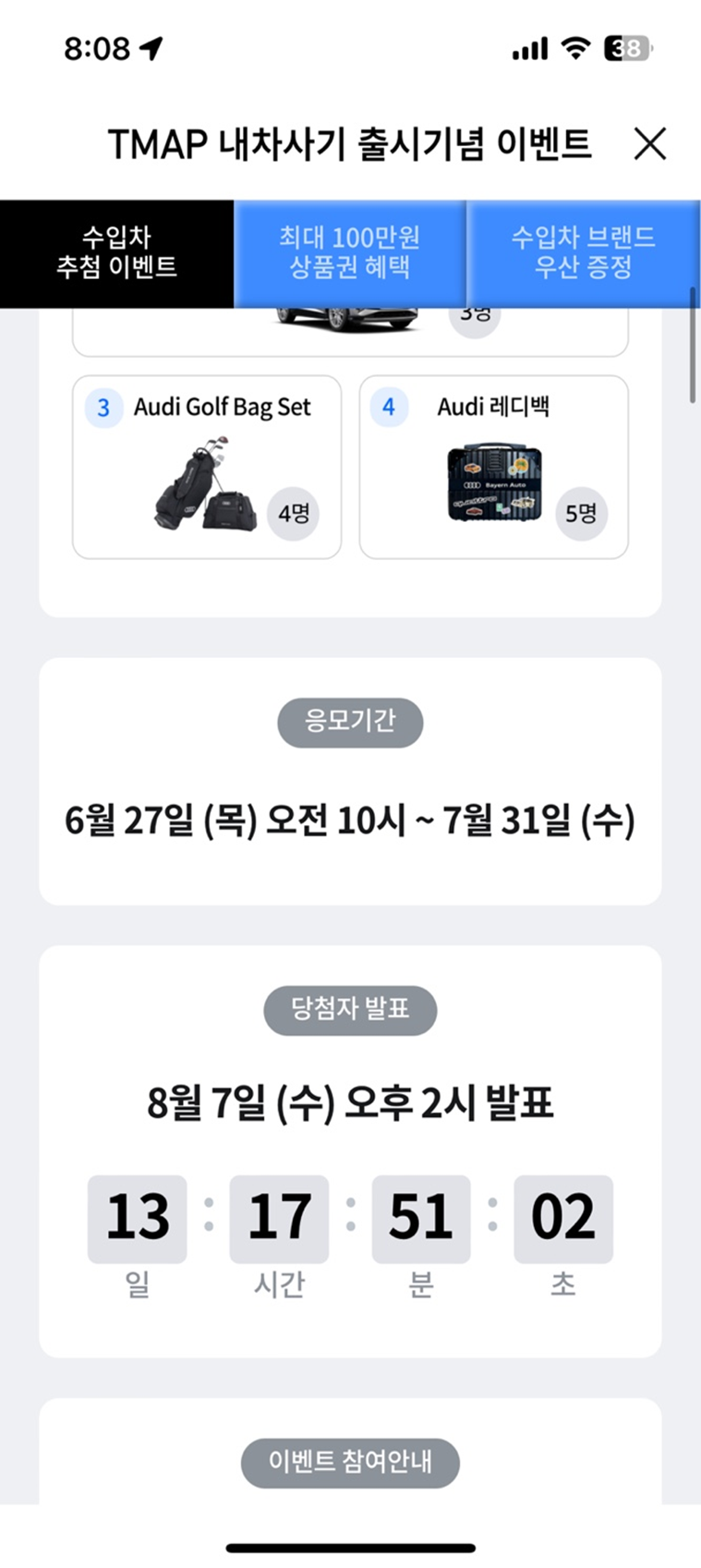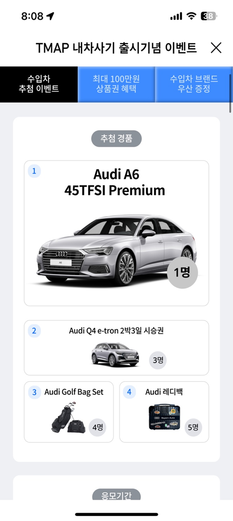 - **AUDI A6**: 추첨일 - 8월 7일