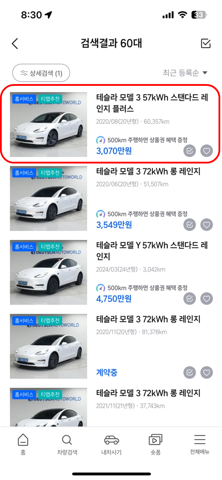 미션 2: T map 내차사기에서 관심 있는 중고차량을 클릭하여 조회합니다.