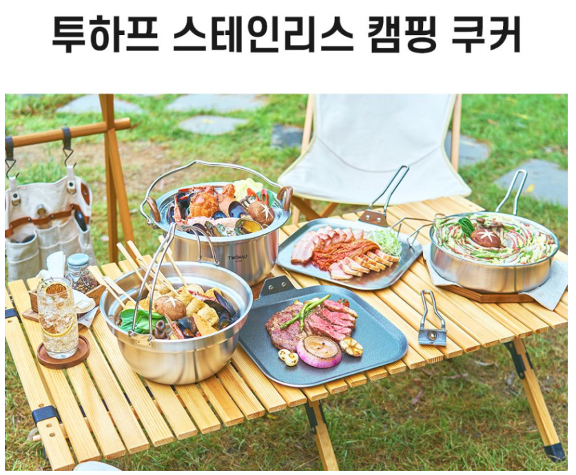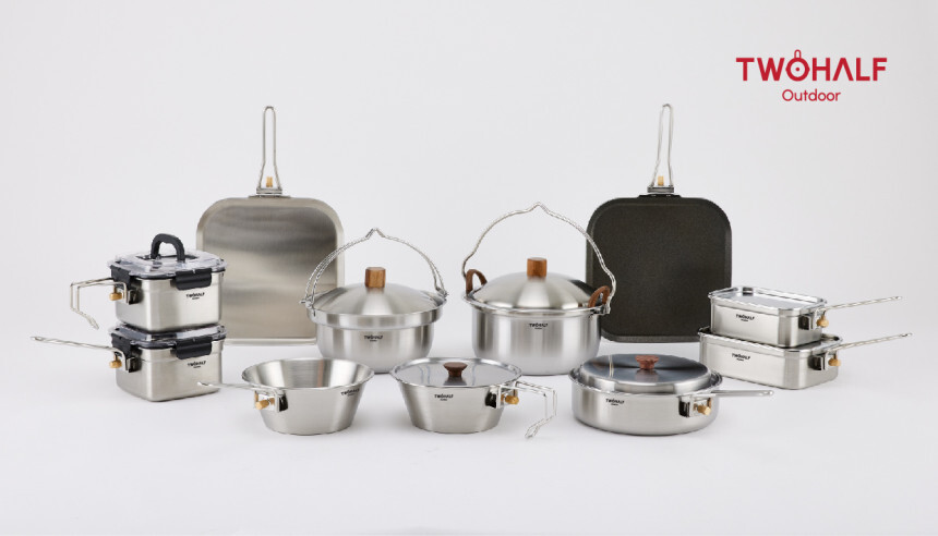 투하프아웃도어 제품에는 사각그리들(후라이팬), 사각냄비, 직네모반합, 샤브샤브냄비, 전골냄비, 시에라컵이 있다. 모두 스테인레스 재질로 되어있다. 가격대도 모두 10만원 이하로 일반 캠핑용품의 가격대비 저렴한 편이다. 나도 집에서도 사용하고 있지만, 후기들에도 집에서도 사용하기 적당한 제품이라는 내용들이 많다.
