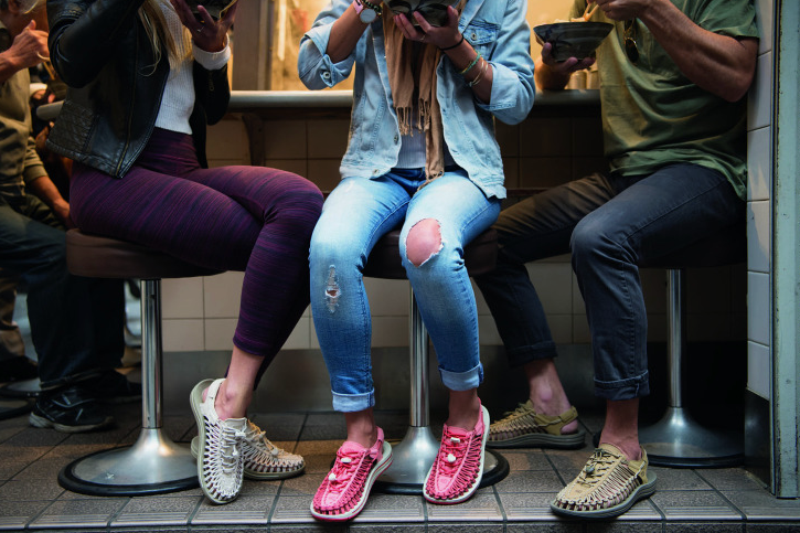 그 중에서도 신발류는 수집을 취미로 하는 사람이 많을정도로 다양하다. 많은 브랜드들이 있지만, 그중에서 최근에 눈에 띄는 브랜드는 Keen(킨)이다. 아웃도어 활동에 유명한 브랜드인데, 내구성도 높고, 방수기능도 좋아서 요즘같은 장마철에도 부담이 없다. 그중에서도 '재스퍼' 시리즈는 출시하자마자 모두 품절됐었는데, 이번에 재출시를 했다. 요즘 캠핑장에 가면 재스퍼를 신고 캠핑을 즐기는 사람들이 많이 보인다. 기능성이 좋기도하고, 디자인적으로 눈에띄기도 한다. KEEN제품은 재스퍼가 아니어도 다른 디자인들도 이미 많은 캠퍼들이 즐겨신고 있다. 특히 여름에 KEEN '유니크' 샌들은 수륙양용으로 만능이다.