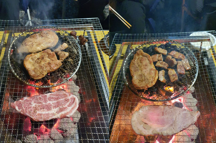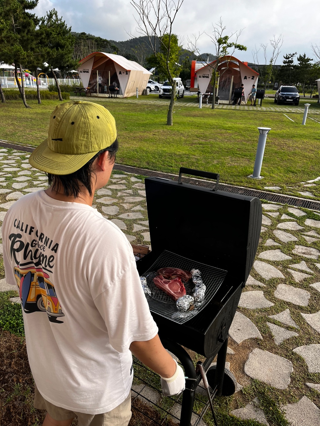 캠핑에서 제일기대되는 일은 바베큐다. 바베큐를 하지 않으면 캠핑을 할 이유가 없다. 집에서 부르스타로 불판위에 굽는 삼겹살도 맛있지만. 밖에서 숯불이나 장작에 석쇠그릴로 굽는 바베큐는 두세배는 더 맛있는 느낌이다. 실제로는 집에서 먹는게 더 맛있다. 불에 그을리지도 않고 타지도 않고, 밝은데서 먹기좋게 굽는다. 하지만 캠핑장에서, 밖에서 즐기는 바베큐는 그런 불편함을 감수 하고도 먹을만큼의 분위기도 만들어주고, 맛도 낸다. 하지만 조금의 연습은 필요하다.