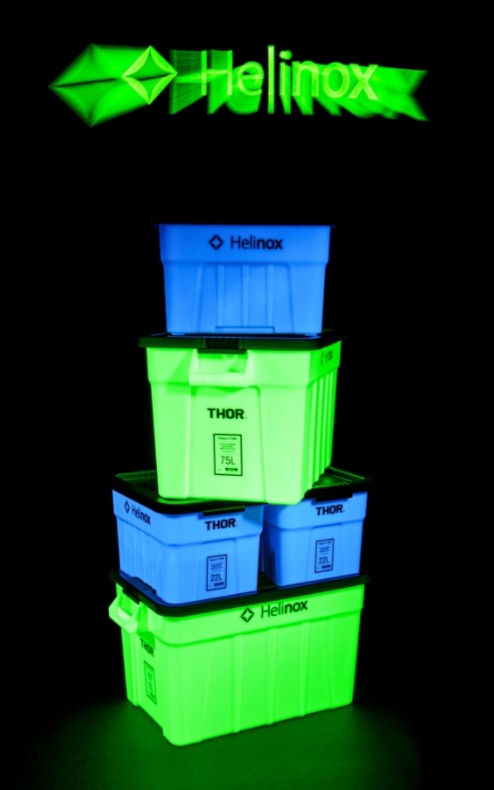 토르박스는 캠퍼에게는 매우 유명한 브랜드다. 튼튼해서 캠핑용품 보관함으로 유용하다. 테이블로 쓸수 있도록 나온 상판도 이미 널리 쓰이고 있다. 날진은 리사이클 보틀로 유명하다. 다양한 색상의 물병들을 만들어 재활용에 앞장서고 있다. 이번에는 헬리녹스가 두 브랜드와 글로우, 야광 에디션을 출시해서 관심을 끌고있다.