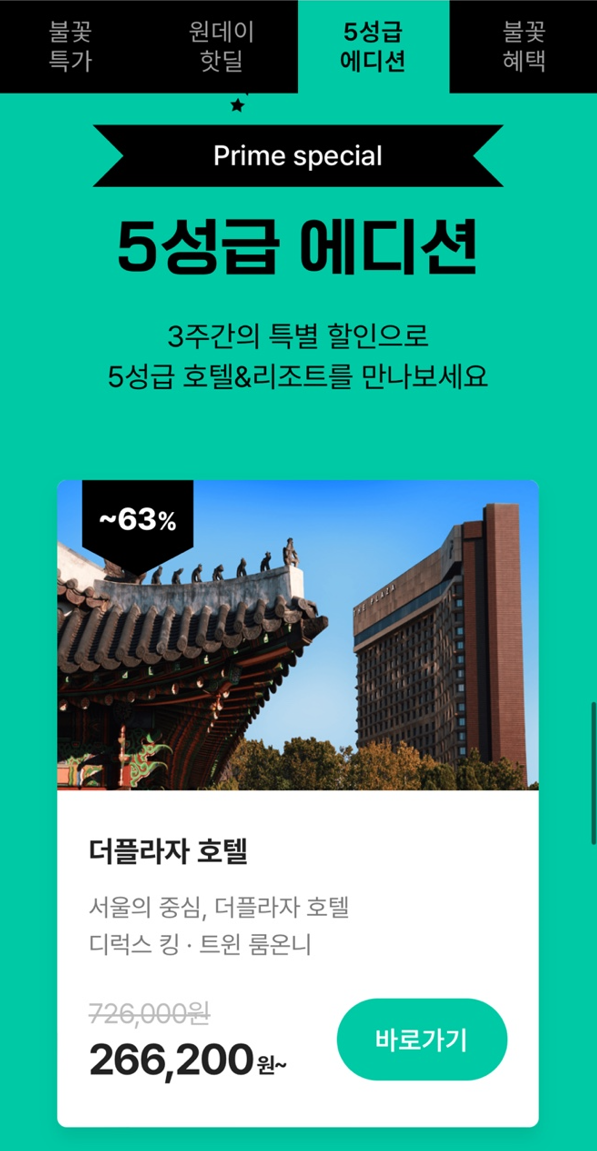 - 혜택: 평소에는 가격이 부담되어 이용하기 어려웠던 5성급 호텔&리조트를 최대 63% 할인 받아 이용 가능한 특별 기회