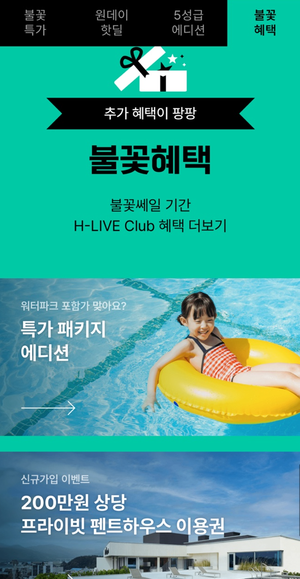 - 혜택: 불꽃세일 기간에 리조트 이용 시 다양한 시설 이용권 할인 혜택 제공